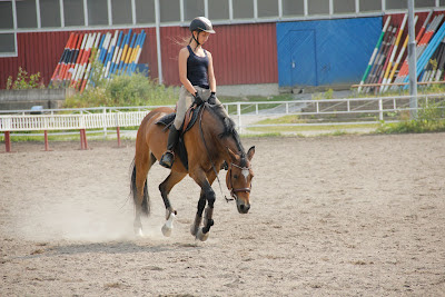 Sitten Saara meni Roosalla ja Roosa oli ihan venkuraponi eikä oikeen ois keskittyny ja vähän ajan päästä laukassa Saara tippu siltä, ei harmi vaan tullu kuvattua kun olin just laittanu kameran pois :/ Enkä myöskään oikeen nähny sitä tilannetta, ulkoo oli kai kuulunu ääniä ja sit oli "pelästyny" ja pukittanu aika isosti ja Saara ei sit ollu ihan valmiina niin lensi alas :D Karon kaa Roosakin käyttäyty jo paremmin, oli vähän ylienergiaa ilmeisesti kulunu pois :D